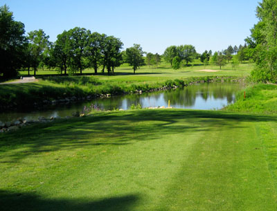 A sharp dog leg right with a fairway bunker on the left side of the fairway and large trees and the Straight River on the right. A well executed fade will leave the player with a second shot to an elevated green. A shot missed to the right of the green will leave a difficult chip and a shot long of the green will find deep rough. Finding the middle of this green with your second shot is always a good play.