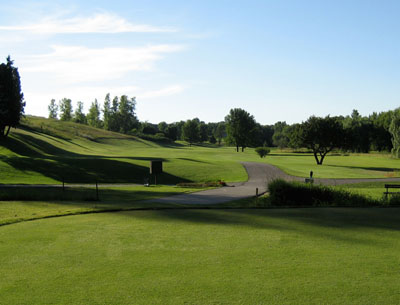 A challenging par 4 for even the accomplished golfer. Long grass left and trees right you must put your drive down the left side as the fairway slopes left to right. A good drive will leave you with a 175 to 200 yard second shot. The green is flat with a side bank left and the river right. Aim your second shot slightly left of center of the green as it is hard to hold the right side. Two putt, and move on feeling good about beating hole #16